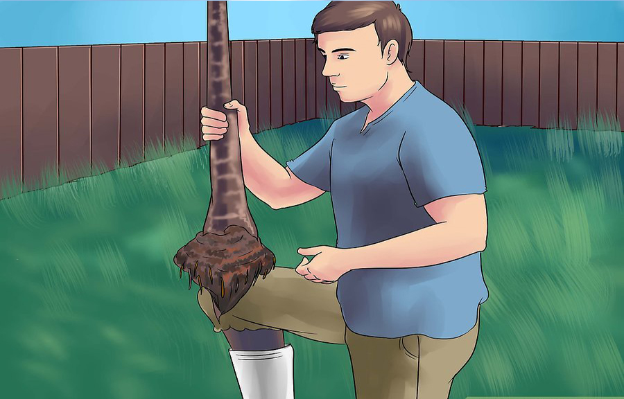 Single Bamboo Method: Use a 3m (10') long bamboo pole or other strong, durable material. Cut a piece of Y-shaped wood 10cm (4") thick and 60cm (2') wide. Let the stem rest on the middle of the "Y" and push the bamboo upwards a little bit so the stem is wedged into the "Y" tightly. Bury the other end of the bamboo (the base) deeply into the ground. Tamp very firmly.